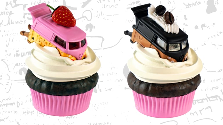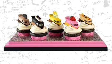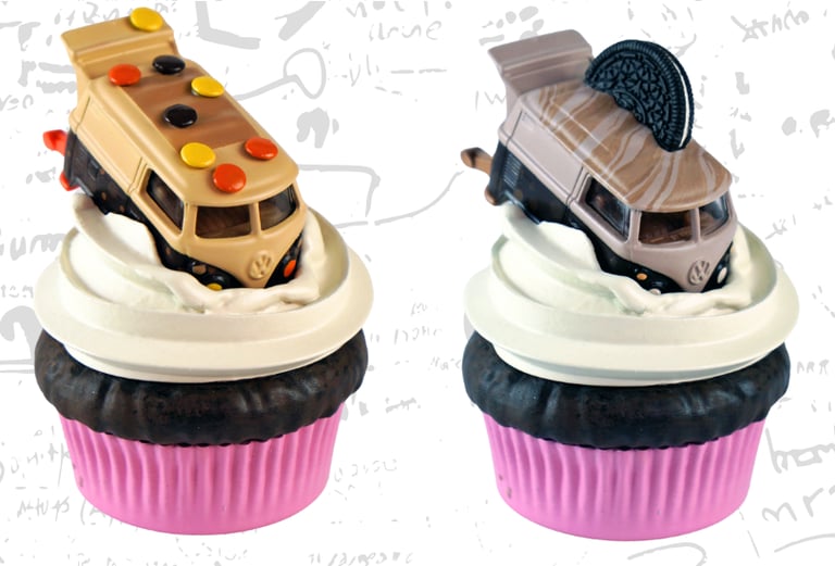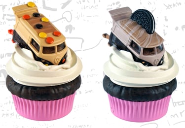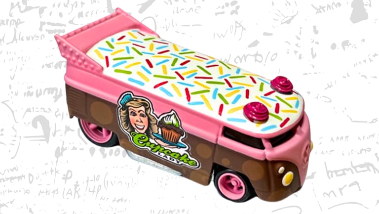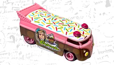 To honour Lorrie’s passion for collecting drag busses and her role in the community as the CupCake Lady at the HotWheels Nationals, Karli took on the challenge of designing a one-of-a-kind Cupcake-themed VW T1 Panel Van project on a 1:64 scale. The casting was meticulously reworked with detailed paint applications, as is Karli's habit, intricate decals, and a theme that reflected the joy and warmth that cupcakes—and Lorrie—bring to the Hot Wheels community. Approximately 30 cupcake-inspired customs were created for the event, each offering a unique spin on the theme and you can find them on Karli's Instagram page.