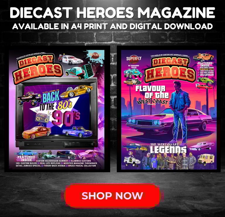 Beyond his custom work, Karli is a devoted attendee of Hot Wheels events, always eager to connect with fellow collectors. When he isn’t crafting intricate diecast pieces, he dedicates his time to his career in social care, his family, and his love for music. His ability to balance creativity, community, and personal commitments makes him a standout figure in the diecast world.