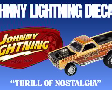 Originally introduced in 1969, Johnny Lightning is a die-cast brand known for American automotive themes and collector-focused releases. The brand was revived by Round 2 and continues producing 1:64 models used by collectors and custom builders.