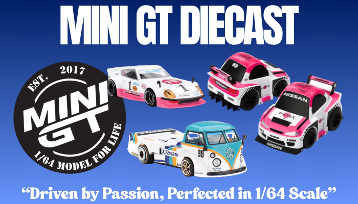 Mini GT is a collector-focused 1:64 die-cast brand known for highly detailed models and realistic proportions. Many customisers use Mini GT castings when working on detailed builds or display-oriented modifications.