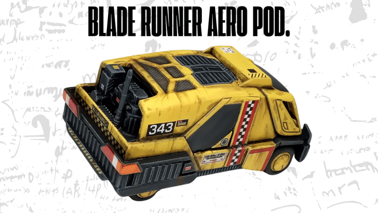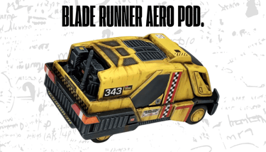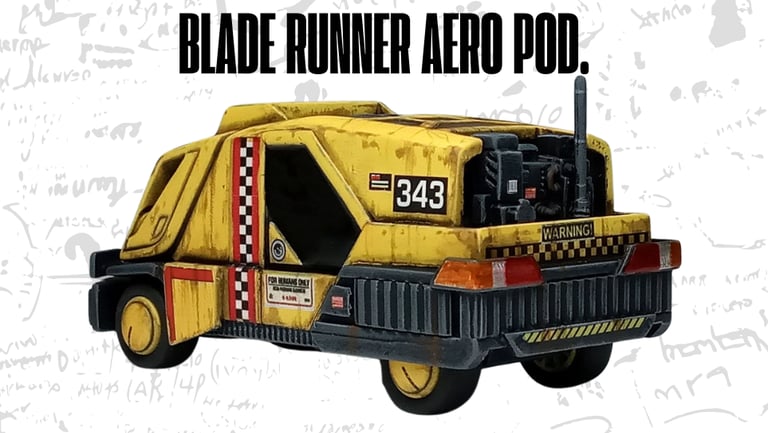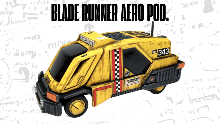 Barry’s yellow Blade Runner Taxi began life as a Hot Wheels Aero Pod – a quirky casting with a plastic body and just enough shape to inspire something new. With Syd Mead’s ‘Telecab’ sketches in mind, Barry got to work with styrene strip, plastic card and precision weathering.