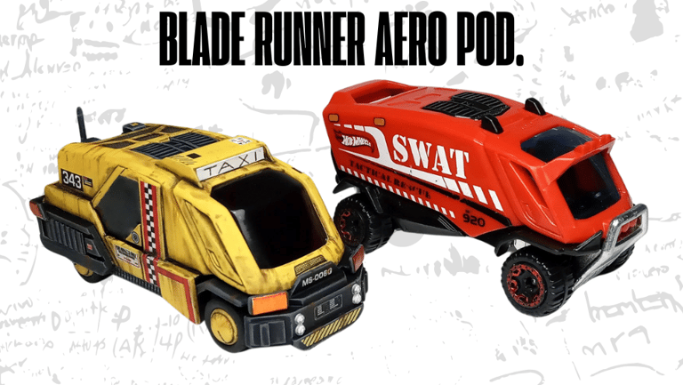 This time, Barry’s passion has led him into the smoky, neon-drenched world of Blade Runner – a world first imagined by the late, great Syd Mead, whose distinctive designs helped define science fiction cinema as we know it. Inspired but seemingly not constrained by Mead’s work, Barry has taken Hot Wheels castings and reimagined them as gritty urban vehicles straight out of a dark, alternative timeline.
