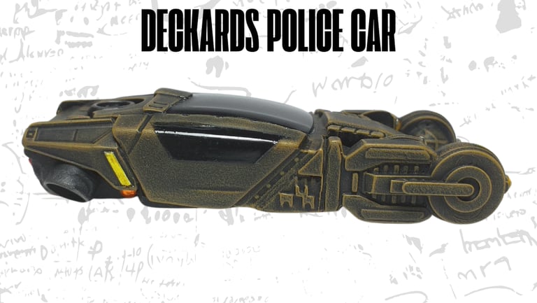 It’s hard to imagine a better base for a Syd Mead tribute than the Hot Wheels Sentinel 400 Limo — a casting based on one of Mead’s original designs. Barry saw the perfect opportunity to reimagine Deckard’s Police Car, blending familiar silhouettes with raw, industrial edge.