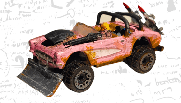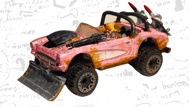 For this build, I decided to transform Barbie’s Corvette movie car into an off-road killing machine. My inspiration came from all the post-apocalyptic vehicles I saw at Wasteland Weekend. It wasn’t the most difficult custom I’ve done, but it was definitely one of the most fun.